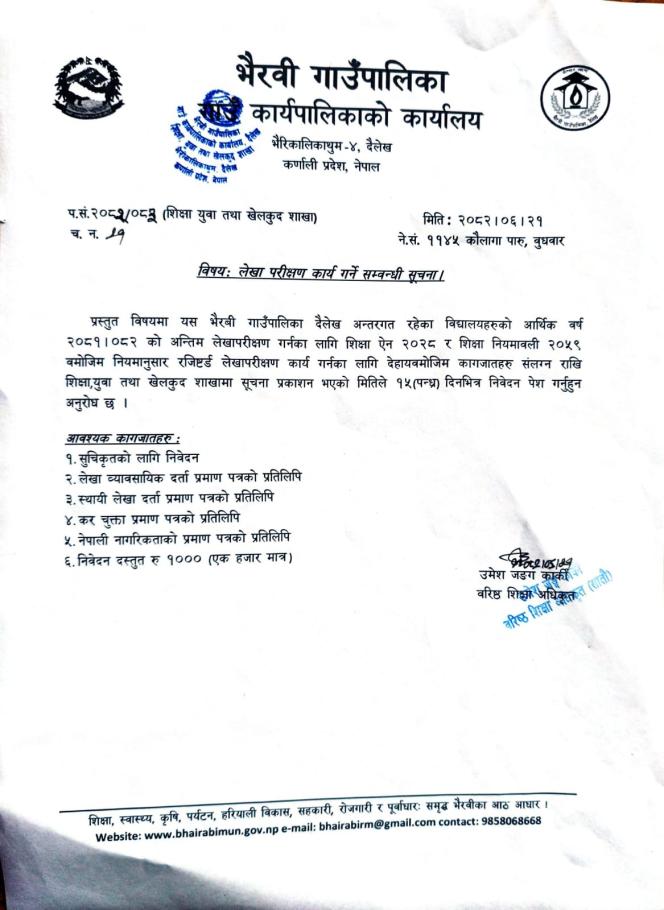 » लेखा परिक्षण कार्य गर्ने सम्बन्धी सूचना ।