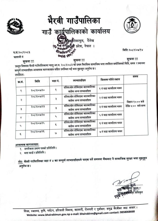 समाजिक सुरक्षा भत्ता वितरण सम्बन्धी सूचना ।