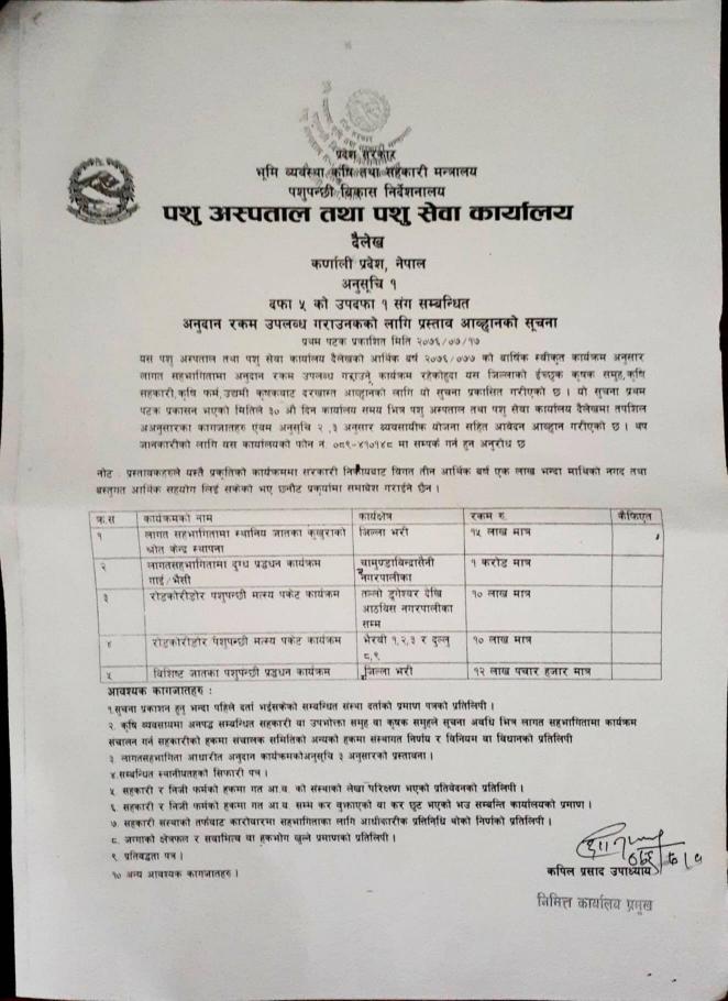 अनुदान रकम उपलब्ध गराउनको लागि प्रस्ताव आव्हानको सूचना ।