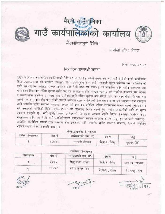 » एम.आई.एस. अपरेटर पदको उम्मेदवार सिफारिस सम्बन्धी सूचना ।