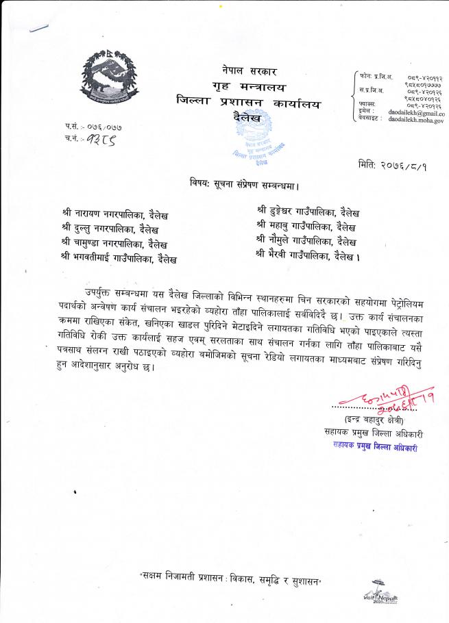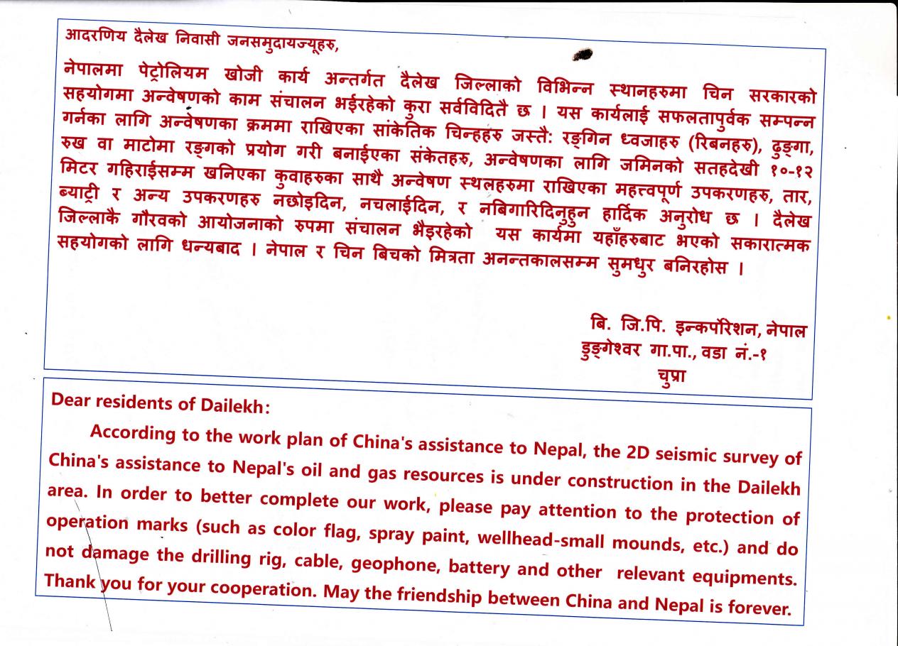 » पेट्रोलियम पदार्थको अन्वेषण कार्य भइरहेको स्थानबाट जारी अत्यन्तै जरुरी सूचना ।
