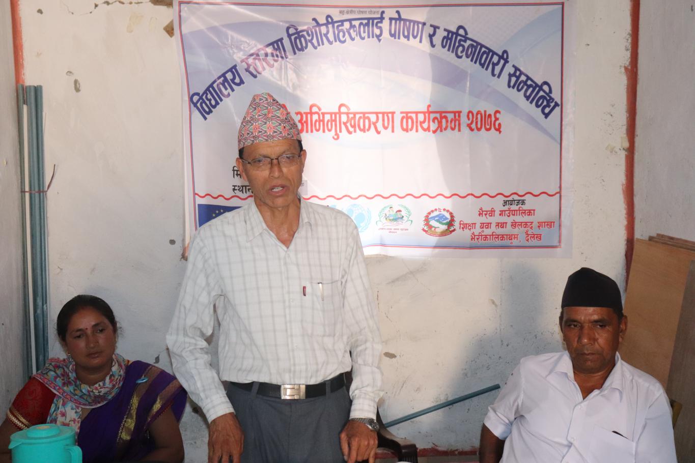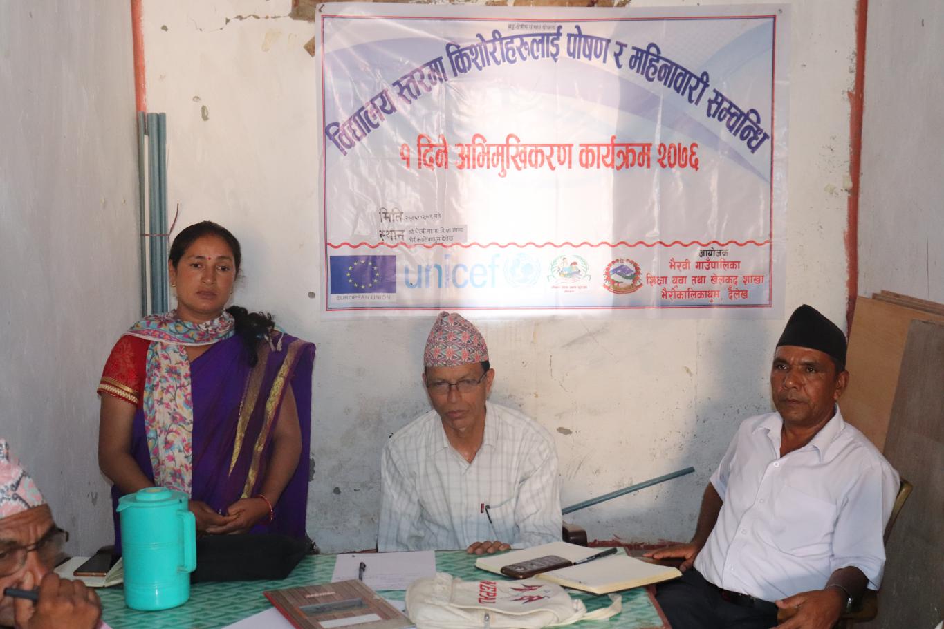 बहु-क्षेत्रीय पोषण कार्यक्रम अन्तर्गत दैलेख जिल्ला भैरवी गाउँपालिका , शिक्षा युवा तथा खेलकुद शाखाकाे आयाेजनामा विद्यालय स्तरमा किशाेरीहरूलाइ पाेषण र महिनावारी सम्वन्धि १ दिने अभिमुखिकरण कार्यक्रम २०७६ सम्पन्न भयाे ।