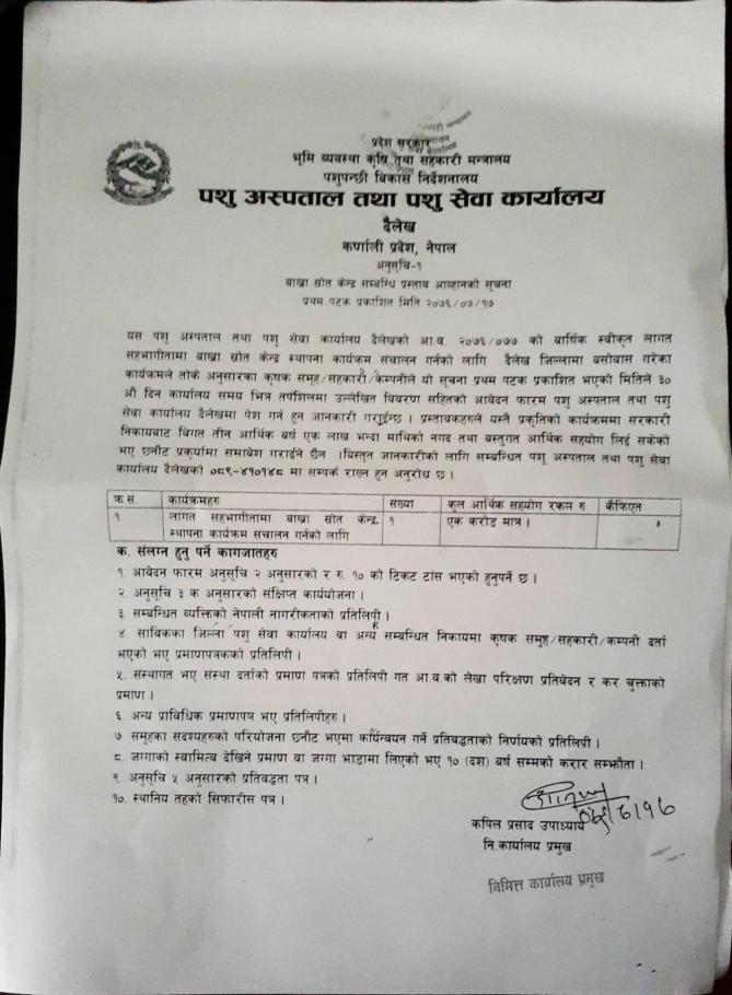 » बाख्रा स्रोत केन्द्र सम्बन्धि प्रस्ताव आब्हानको सूचना ।