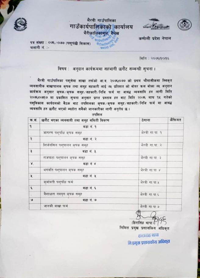 » बोयर क्रस बोकाका लागि ७५% अनुदान कार्यक्रममा सहभागी छनौट सम्बन्धी सूचना । (पशुसेवा शाखा)