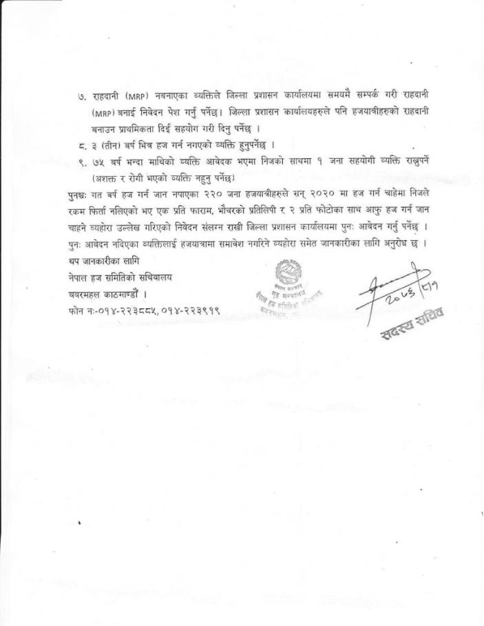 » मुस्लिम धर्मावलम्बीहरुका लागि हज आवेदन सम्बन्धमा ।