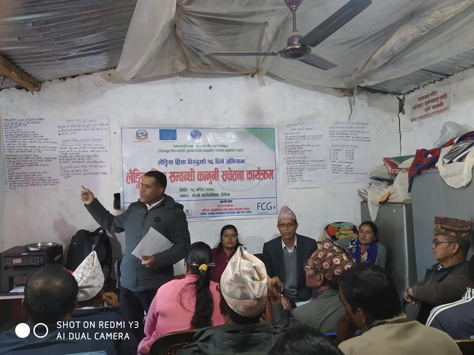 » लैङ्गिक हिंसा विरुद्काे १६ दिने अभियान अर्न्तगत लैङ्गिक हिंसा सम्वन्धी कानुनी सचेतना कार्यक्रम ।