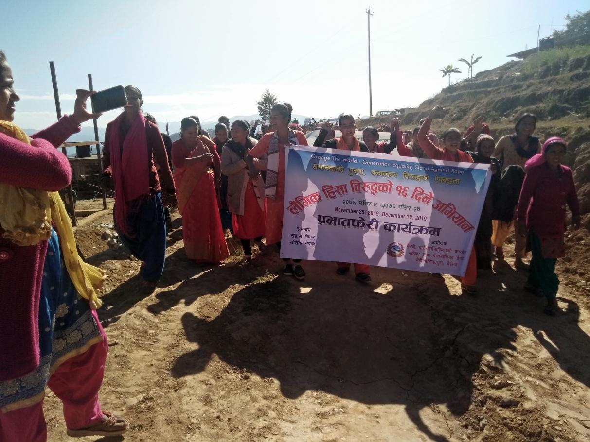 "समानताको पुस्ता, बलात्कार विरुद्धको ऐक्बद्धता" भन्ने नारा सहित मिति २०७६ मंसिर ९ गते देखि २०७६ मंसिर २४ गते सम्म भैरवी गाउँपालिका दैलेखमा लैंगिक हिंसा विरुद्धको १६ दिने अभियान विभिन्न कार्यक्रम गरेर मनाईदै ।