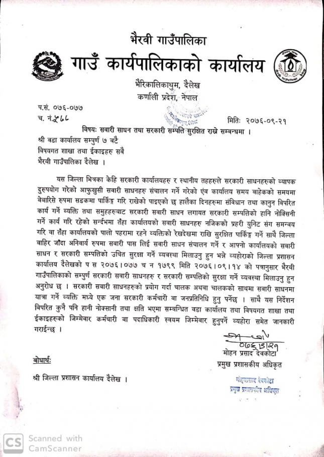 » सवारी साधन तथा सरकारी सम्पत्ति सुरक्षित राख्ने सम्बन्धि सूचना ।