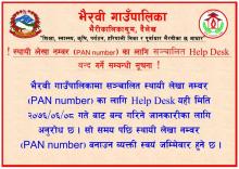 ! स्थायी लेखा नम्वर (PAN number) का लागि सञ्चालित Help Desk बन्द गर्ने सम्बन्धी सूचना !
